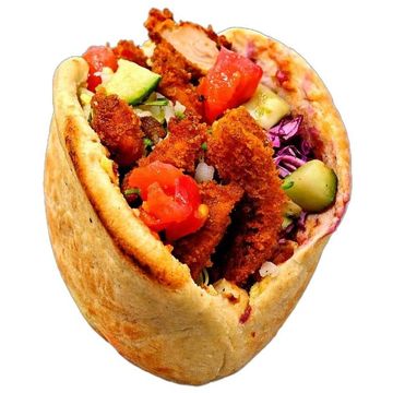 Sink your teeth into golden, crispy chicken schnitzel tucked inside a warm, freshly baked Israeli pita. Layered with crisp veggies, tangy pickles, and our signature tahini or garlic sauce, this half-pocket delight delivers bold Mediterranean flavor in every bite. Perfect for a light, satisfying meal on the go — fresh, fast, and made from scratch daily.
